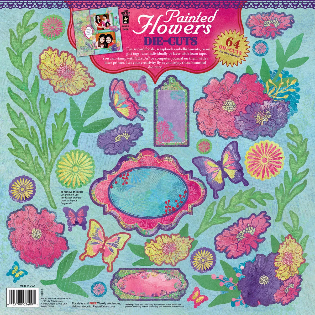 A dreamy addition to your projects! The Painted Flowers Die-Cuts by Hot Off The Press are color-coordinated to work with the Painted Flowers Paper Pack (link) and the Painted Flowers 3-D Foil Paper Tole (link). These 64 die-cuts come on 2 sheets and are perfect embellishments, labels and additions to any creation. Try them out on scrapbook pages, card making, or even tags.
