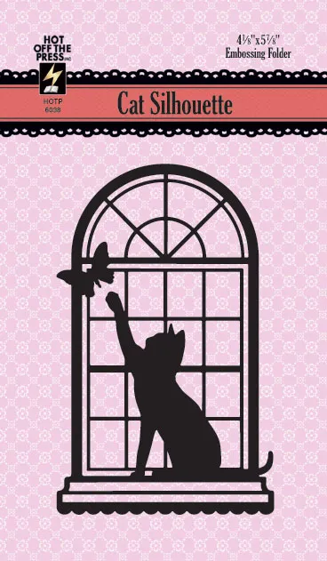 Sweet and playful! The Cat Silhouette Embossing Folder from Hot Off The Press embosses a wonderfully dimensional, feline and butterfly focal framed in a picturesque window, perfect for cat-lovers everywhere! The Cat Silhouette Embossing Folder measures 4 1/8"x5 7/8" and is designed to work with most leading embossing machines including the Big Shot Embossing & Die Cutting Machine (link). Hot Off The Press Embossing Folders come with the design silk screened onto the folder front, making it easy to identify in your crafting stash! You'll also get ideas and inspiration on the back! Try embossing with scrapbooking papers, cardstock, and even holographic papers! Be sure to check out Hot Off The Press' other embossing folders including Fancy Snowflake (link), Pretty Corner (link), and Fancy Christmas Tree (link).