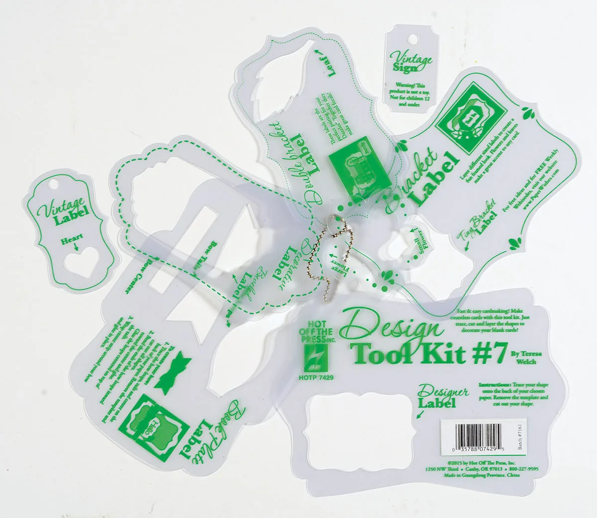 Design Tool Kit #7 brings you more fun template shapes! Design Tool Kit #7 from Hot Off The Press is packed with fresh, versatile shapes that are perfect for creating tags, borders, labels, flowers, bows and more! The template shapes come on a chain for easy removal and storage. This template will make it fun and easy to create embellishments for your scrapbook pages, albums, handmade cards and more! Simply trace the shapes, cut out and layer! The Design Tool Kit #7 template also comes packed with tips and ideas to get you started! Be sure to check out Hot Off The Press' other templates including Design Tool Kit #5 (