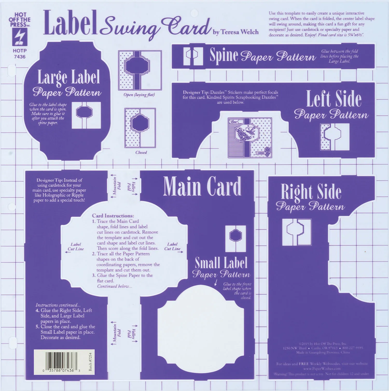 Create decorative label swing cards! The Label Triple Easel Card Template from Hot Off The Press allows you to create an endless supply of stunning Label Triple Easel cards. As each label is lifted, a new layer is revealed! Simply trace the template, cut out, fold and glue as instructed to create incredible handmade cards. Embellish your card with scrapbooking papers, ribbons, Paper Tole die-cuts or anything you choose – perfect for birthday, holiday and all-occasion cards! Be sure to check out other Hot Off The Press Templates including Heart Triple Easel (link), Label Swing (link) and Star Triple Easel (link).