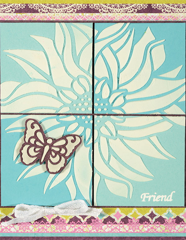 Giant flower stencil! Add stunning flowers to your projects with this Dahlia 6"x6" craft stencil from Hot Off The Press! This stencil features a large floral design plus two smaller butterfly images perfect for scrapbooking, card making and all other types of paper crafts. Easily transform this flower into a Poinsettia for Christmas! Use this stencil with embossing paste, chalks, glimmer mist, the Perfect Airbrush or even metal leafing to add dimension and texture to your craft projects! This stencil is made of lightweight, opaque plastic that cleans up easily. Be sure to check out Hot Off The Press' full collection of craft stencils including Music Notes (link), Sparkle More (link) and Ferns (link).