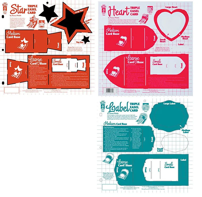 Decorate your cards, add your message and you're done! To make it even easier, the templates include paper patterns for covering your card bases. Also included are complete cutting, scoring, and folding instructions to make it as easy as can be! All are designed by Teresa Welch, our folded cards expert. You'll love creating your very own engineered cards with these 3 card templates: