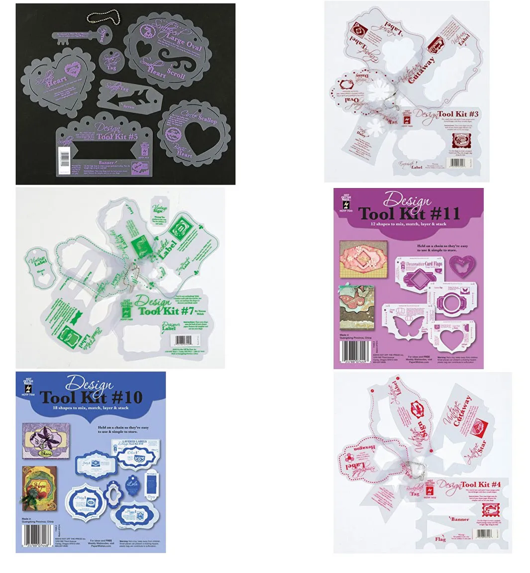 Fun template shapes! All these Design Tool Kits from Hot Off The Press are jam-packed with fresh, versatile shapes, perfect for card making, scrapbooking, and other paper crafts. Use them to create tags, borders, labels, flowers, bows and so much more!
