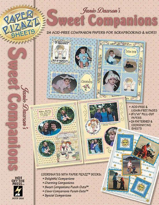 Sweet Companions! This adorable book has 24 pages of 8 1/2"x11" papers. Designs include stars, suns, flowers, cherries and more. Perfect for scrapbooking, card making and all your papercrafts.