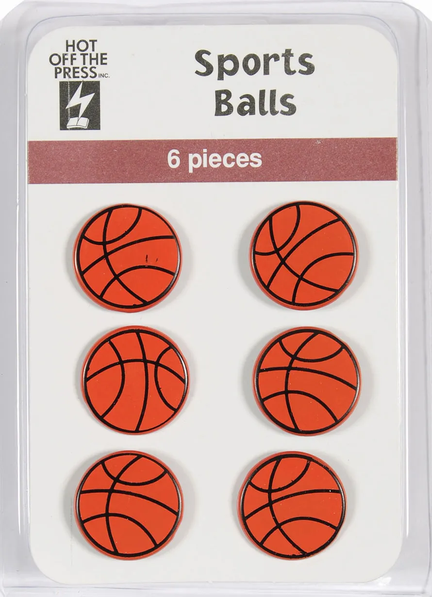 Score! These great brads are perfect for basketball layouts and cards. Each brad is 3/4" wide. 6 brads per pack.